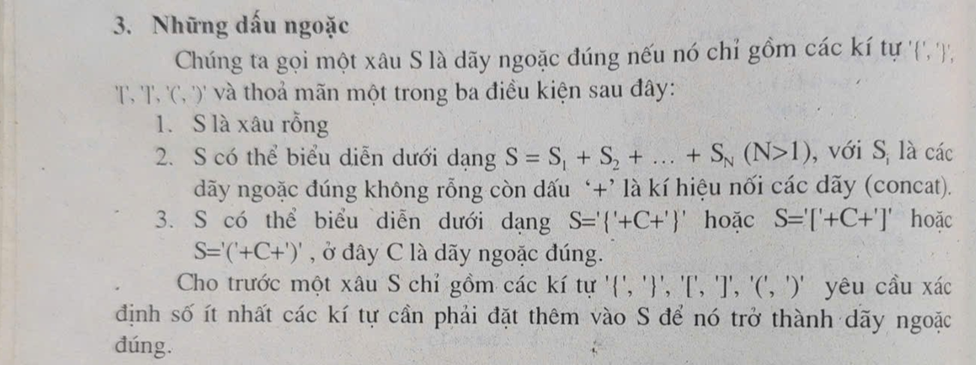 OLP_101 Thêm các dấu ngoặc để trở thành biểu thức ngoặc đúng